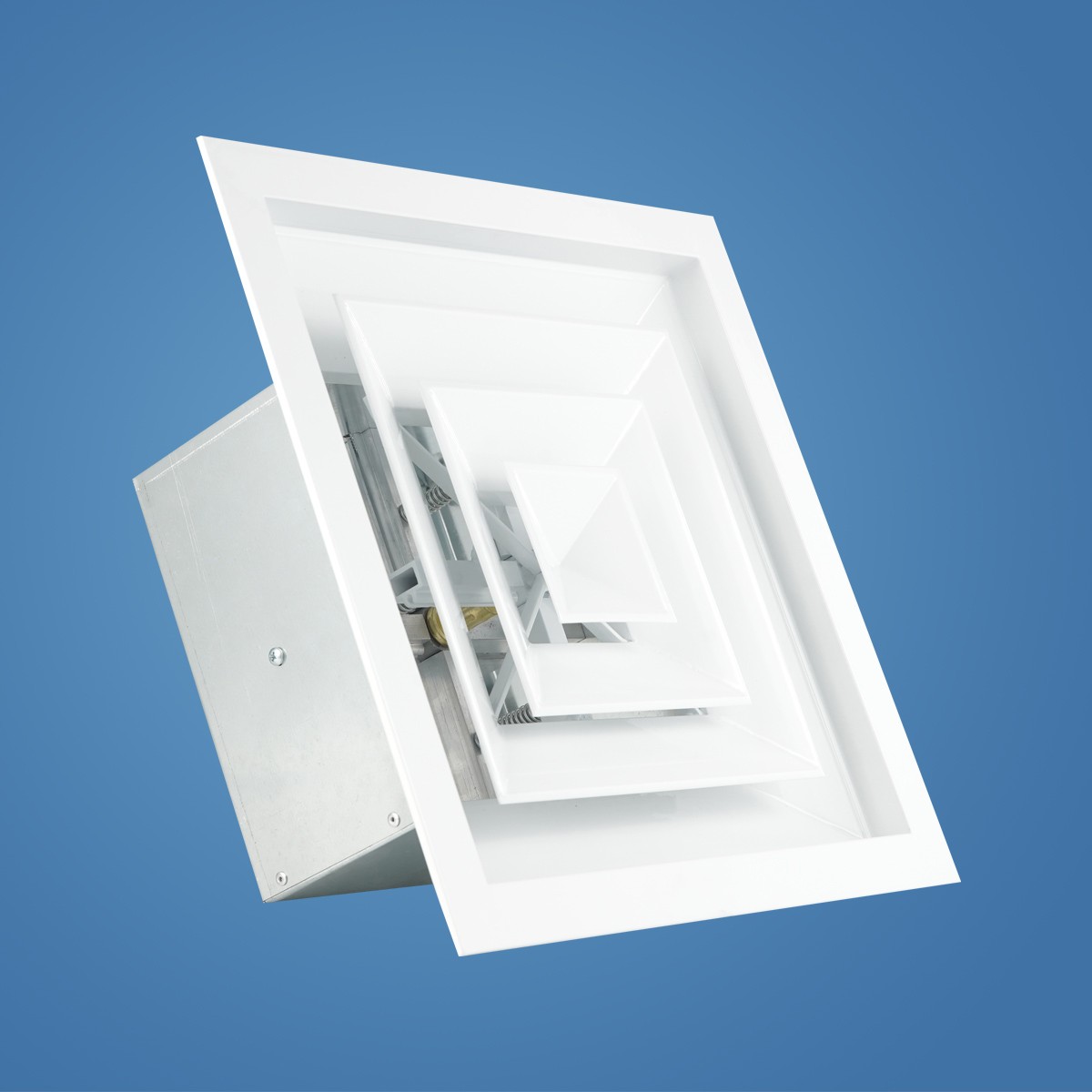 产品特点:\"常用的空调送风口、具有均匀散流特性及简洁美观的外形,可根据使用要求制成正方形或长方形,能配合任何天花板的装修要求\"