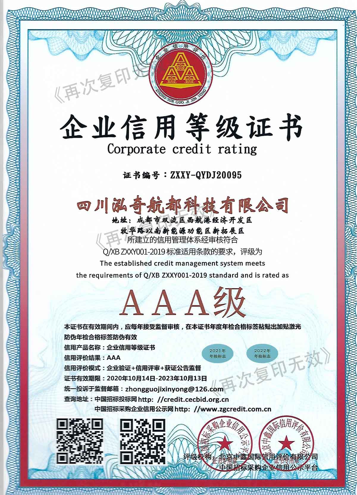 企业信用等级证书(AAA级)