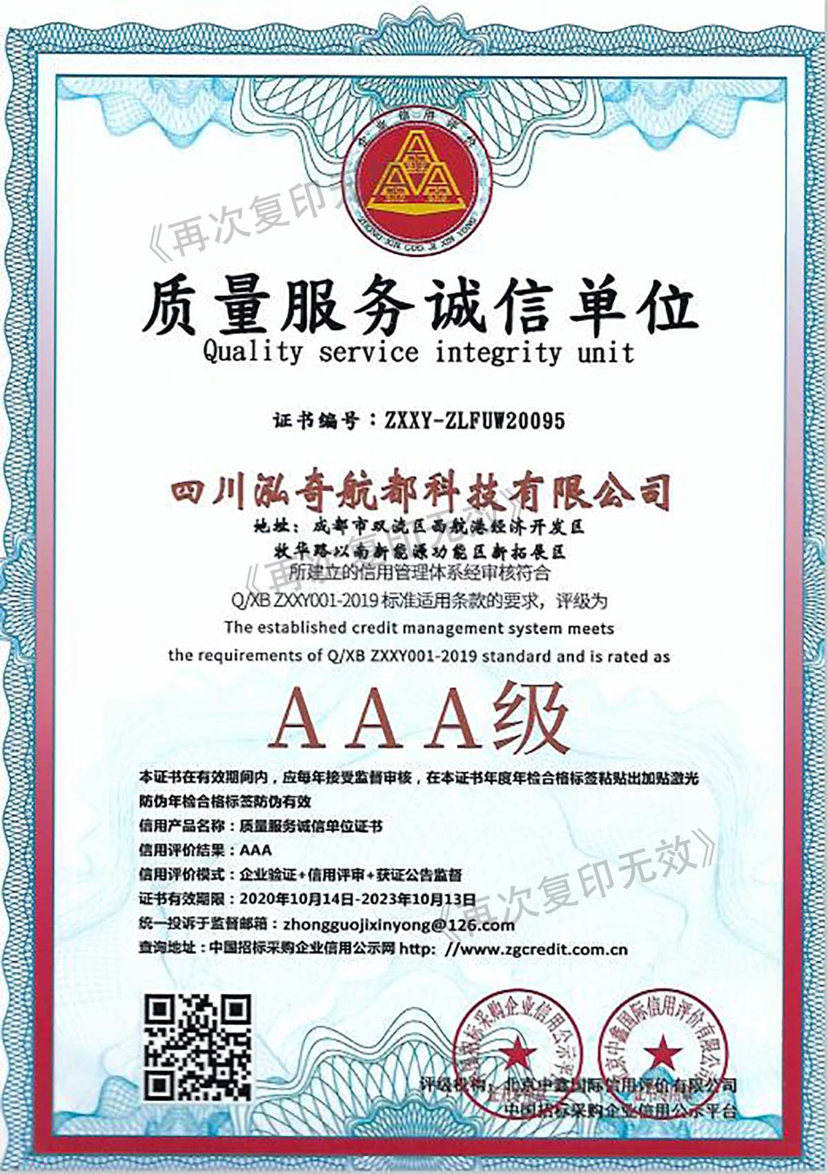质量服务诚信单位(AAA级)