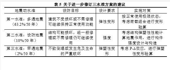 (1)继续保持三水准设防的思想。如前所述,多级设防是当今世界各国建筑抗震设计的潮流,我国的三水准设防,在理念上属于世界前面水平,应继续保持。