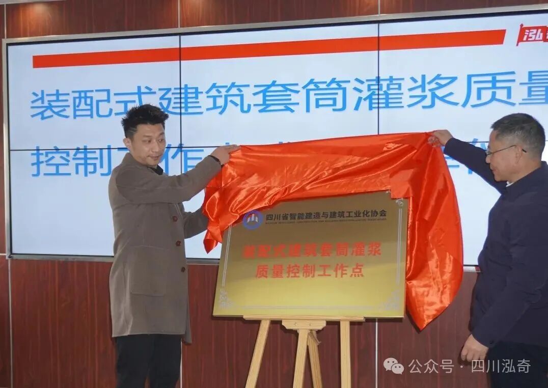会上,陈军宣读了《关于设立“装配式建筑套筒灌浆质量控制工作点”的通知》,明确协会依托四川泓奇设立装配式建筑套筒灌浆质量控制工作点,由泓奇公司副总经理陶勇担任工作点负责人。随后,协会副会长杨理民与泓奇董事长张智博共同揭牌。