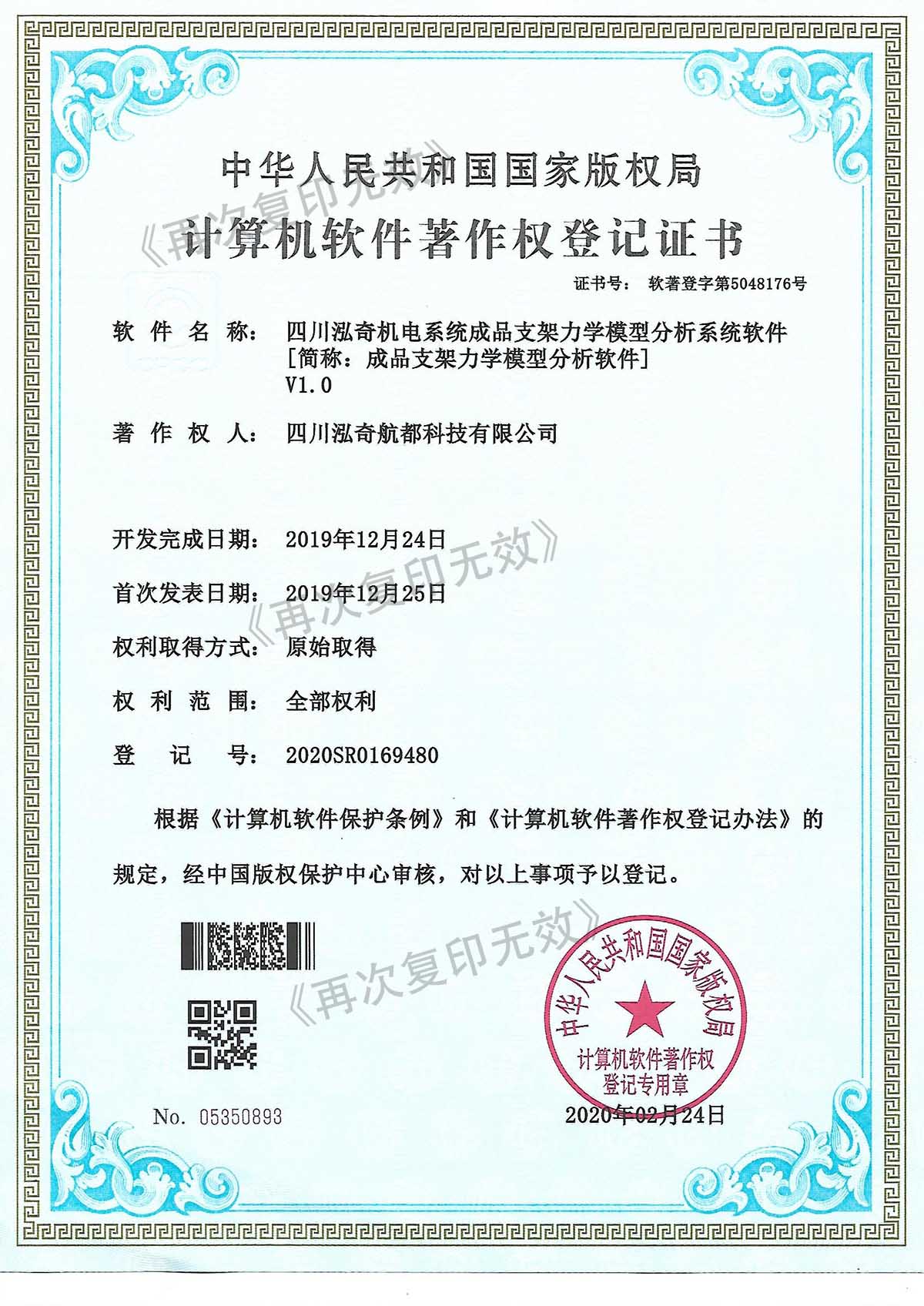 计算机软件著作登记证书