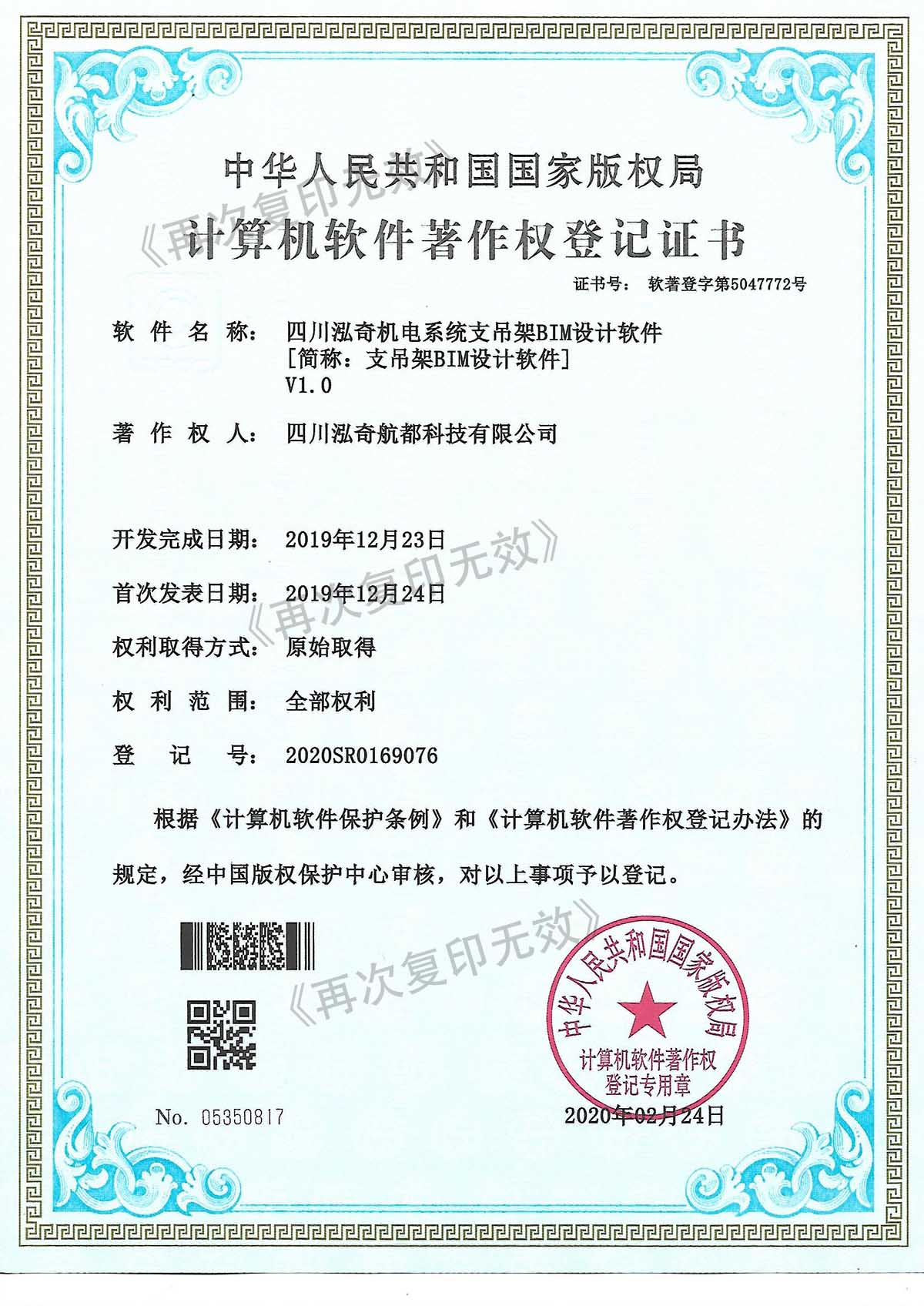 计算机软件著作登记证书