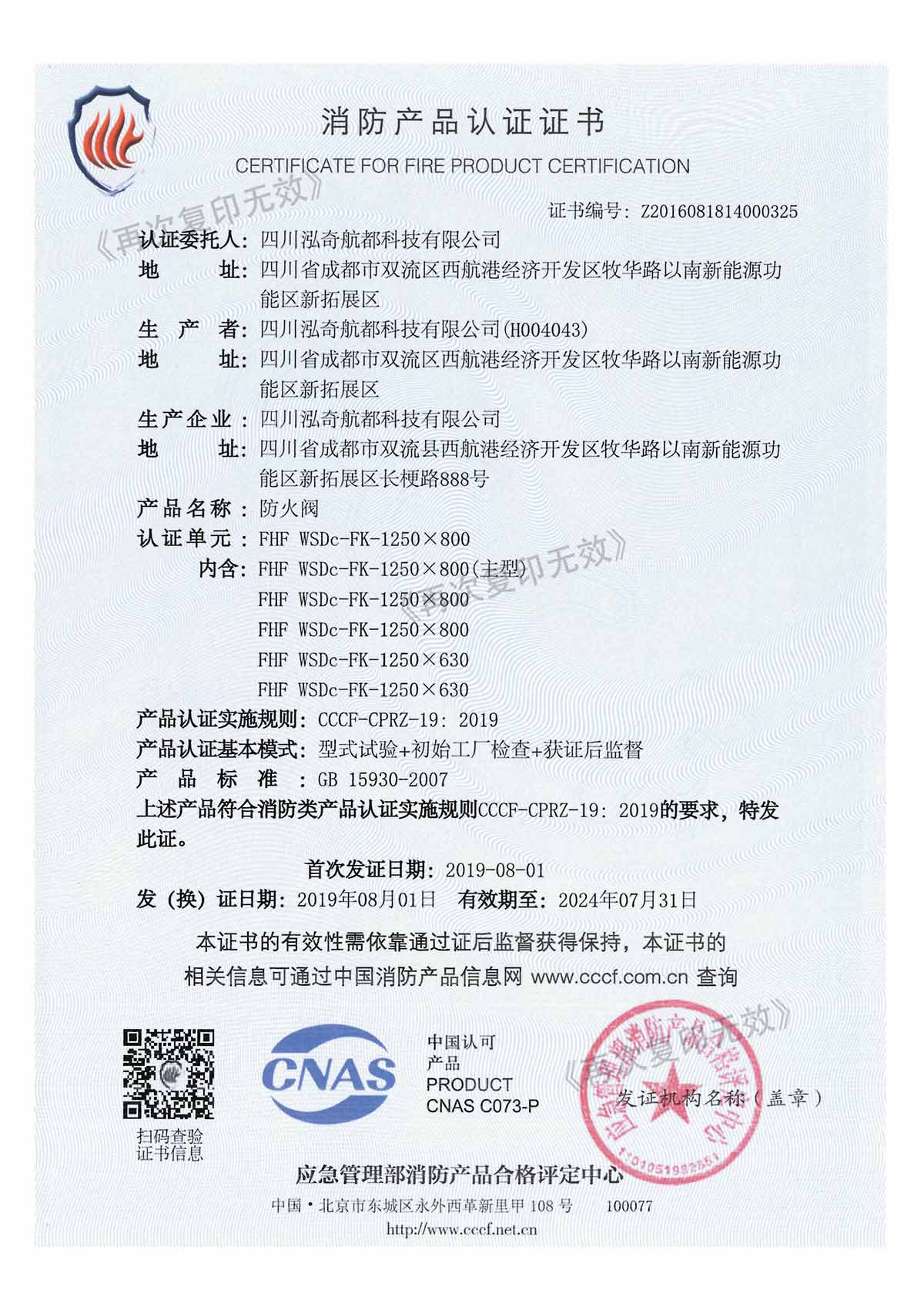 消防产品认证证书
