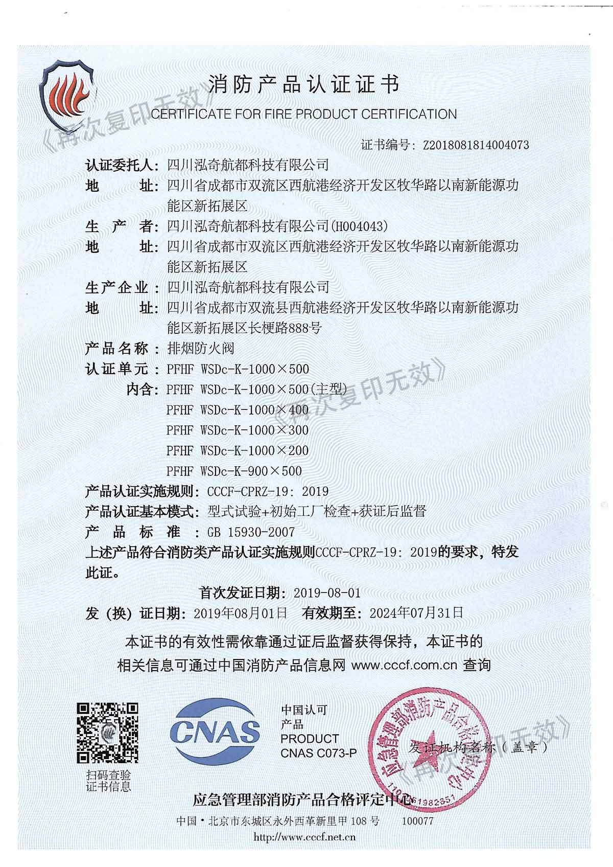 消防产品认证证书