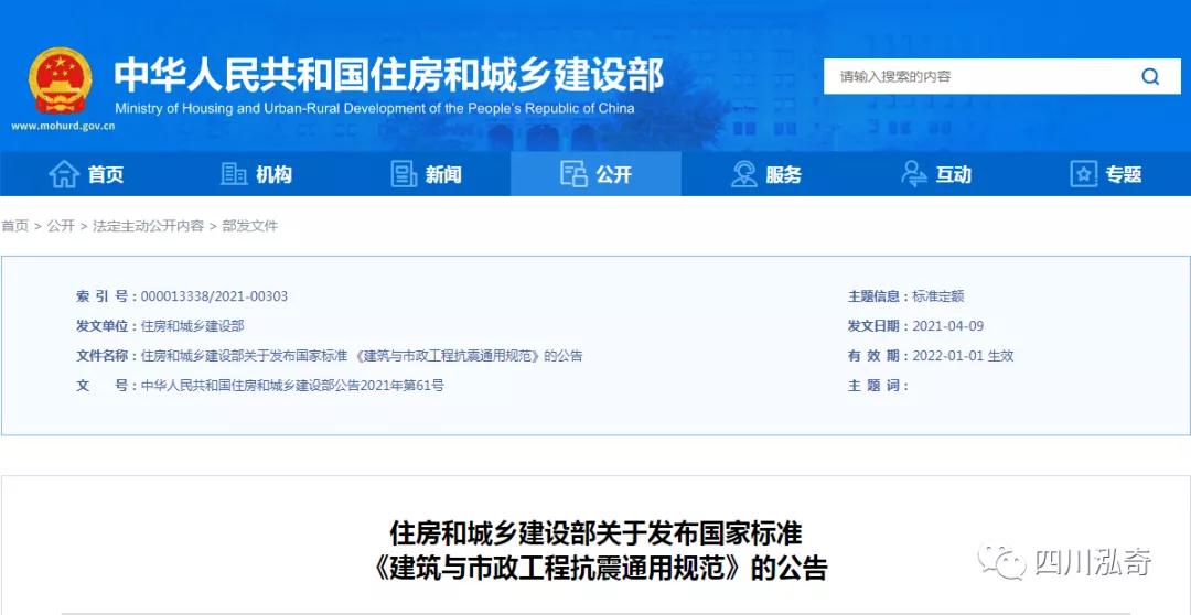 住房和城乡建设部于2021年7月15日发布了《建筑与市政工程抗震通用规范》GB55002 ,新规为强制性工程建设规范,全部条文必须严格执行。 将于2022年1月1日起实施。