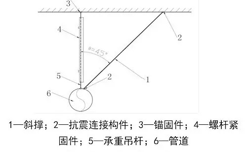 2.1.9 单管(杆)抗震支吊架由一根承重吊架和抗震斜撑组成的抗震支吊架。