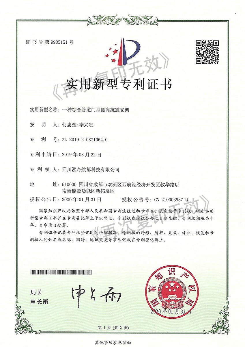 一种综合管道门型侧向抗震支架